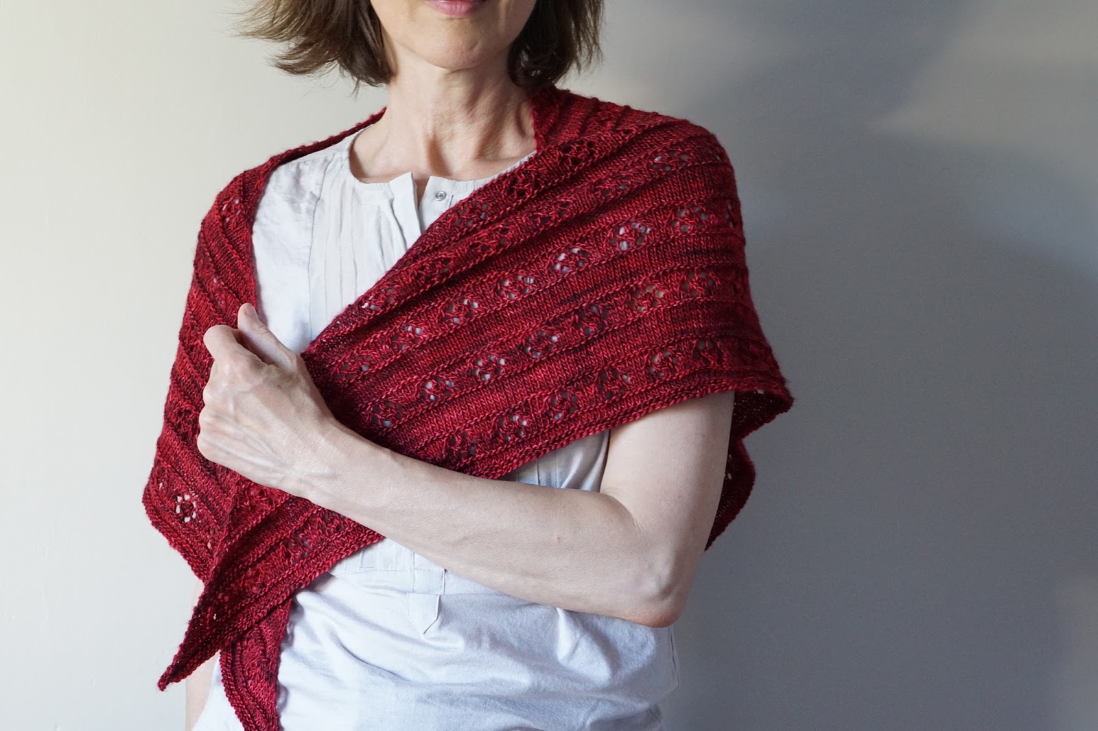 Of course it isn't hard to see, looking through my previous knitted FOs, that Madelinetosh Merino Light is pretty much my favourite yarn for shawls. What's more, I am cer-azy about this colour. Tart is the most beautiful shade of red ever. It is the intensity of plump late-summer berries, ripe and falling off the stalk without any hint of pressure and bursting with luscious flavour. So why am I passing it on? Because I have one more in my stash ... that's why!!
